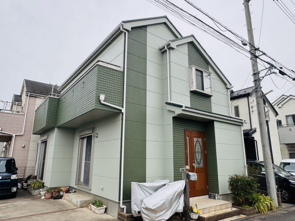 長年の風雨に晒され、劣化が進んでいた外壁ですが、今回は爽やかな緑系のカラーデザインで生まれ変わりました!🌿🔧 使用したのは耐久性に優れたシリコン樹脂塗料。これで長く安心してお過ごしいただけますね👍💪